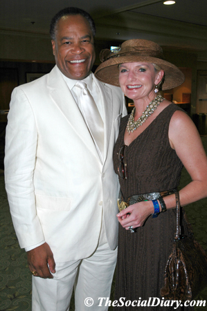 Others there looking fabulous and ready to have a terrific day were Dianne Bashor, Denise Hug, Jesse Knight in an all white on white suit ensemble, Yolanda Walther-Meade, hatless, strapless and fabulous, Scott Johnston in perfect pinstripes by Ralph Lauren Polo, Leonard Simpson in a sleek suit, Carol Karlovich in light rainbow hues, designer Stephan McKellar, Sally Thornton vibrant as a peach from the South, and Diana Cavagnaro, lovely in lemon inspired colors and a hat made by herself. In fact Diana made quite a few of the millinery wonders seen on pretty heads at the Turf Club.